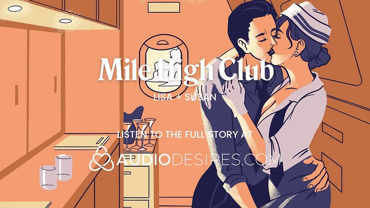 Flight attendant's dripping wet pussy licked risky by desperate lesbian mid-flight